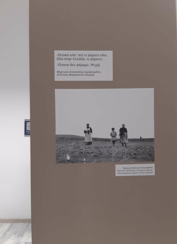 Αυτή είναι η μαρτυρία της Αθανασίας Ναβράζογλου που ήρθε στον Πειραιά από το χωριό Τσατ της Καισαρείας μετά τη Μικρασιατική καταστροφή. Η φωτογραφία της μαζί με τη μαρτυρία είναι κολλημένα σε έναν καθρέφτη στο ύψος του βλέμματος του επισκέπτη της έκθεσης «Ιστορίες Επιβίωσης – Μικρασιάτες πρόσφυγες και εργασία στις νέες πατρίδες» (σε γενική επιμέλεια της Μ. Καμηλάκη και επιμέλεια των Μ. Βλασσοπούλου & Α. Καραπάνου, με την επιστημονική συνδρομή των Ν. Ανδριώτη, Ευ. Αχλάδη, Ευ. Καραμανέ, Γ. Καραχρήστου, Π. Ποτηρόπουλου & Σ. Ριζά) που εγκαινιάστηκε χθες από τον Πρόεδρο της Βουλής, Κωνσταντίνο Τασούλα, στο πρώην Δημόσιο Καπνεργοστάσιο όπου στεγάζεται η Βιβλιοθήκη της Βουλής.
