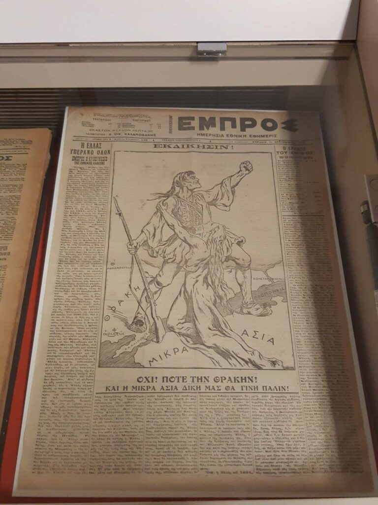 Για τη δεύτερη δορυφορική έκθεση «Το 1922 στον Τύπο» (σε επιμέλεια Ε. Αντωναράκου και Ε. Δρούλια) αξιοποιούνται τεκμήρια από τη συλλογή ημερήσιου και περιοδικού τύπου της Βιβλιοθήκης της Βουλής, παρουσιάζοντας επιλεγμένα φύλλα από τον Μικρασιατικό Τύπο της Κωνσταντινούπολης και της Σμύρνης, τον ελλαδικό, τον ομογενειακό (κυρίως των ΗΠΑ και της Αιγύπτου) και τον αλλόφωνο.