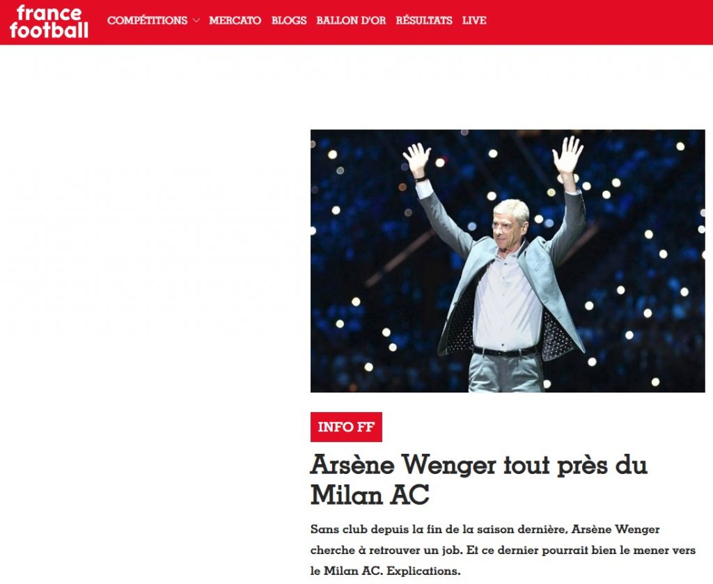 Ετοιμος να αναλάβει την τεχνική ηγεσία ενός ακόμα σπουδαίου συλλόγου στον χώρο του ευρωπαϊκού ποδοσφαίρου φέρεται να είναι ο Αρσέν Βενγκέρ, καθώς σύμφωνα με δημοσίευμα του France Football, πείστηκε να γίνει με το νέο έτος «κάτοικος» Μιλάνου.