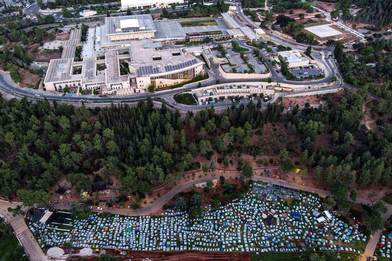 Χιλιάδες διαδηλωτές κατασκήνωσαν έξω από την Κνεσέτ από την Κυριακή, ενώ τη Δευτέρα σημειώθηκαν επεισόδια με τις δυνάμεις ασφαλείας.