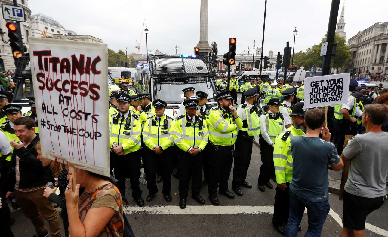 Στους δρόμους δεκάδων πόλεων της Βρετανίας κατέβηκαν εκατοντάδες χιλιάδες πολίτες από το μεσημέρι του Σαββάτου για να διαμαρτυρηθούν για την απόφαση του πρωθυπουργού Μπόρις Τζόνσον να αναστείλει για περίπου πέντε εβδομάδες τη λειτουργία του Κοινοβουλίου ενώ μεγαλώνει όλο και περισσότερο η πιθανότητα για την έξοδο της χώρας από την ΕΕ χωρίς να υπάρχει συμφωνία.