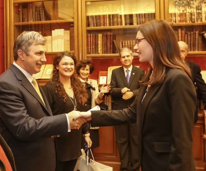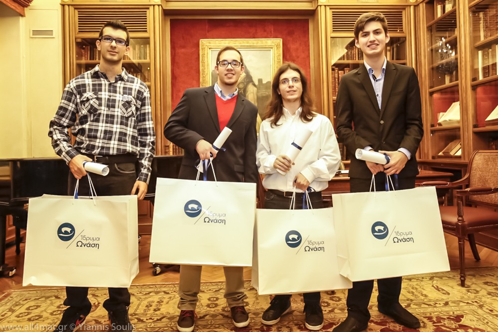 Μέσα στην αίθουσα της Ελληνικής Βιβλιοθήκης του Ιδρύματος Ωνάση, o πρόεδρος του ιδρύματος Αντώνης Παπαδημητρίου, χαιρετίζει τους παρευρισκόμενους και σημειώνει: «Σήμερα είναι μια ξεχωριστή μέρα αφού γιορτάζουμε τη συμμετοχή των παιδιών στις επιστημονικές Ολυμπιάδες. Μόνο η συμμετοχή τόσων ελλήνων μαθητών σε βαλκανικούς και διεθνείς διαγωνισμούς είναι μεγάλη νίκη αφού μπορούμε σε ένα τόσο δύσκολο τοπίο να συμμετέχουμε σε τόσους ανταγωνιστικούς διαγωνισμούς».