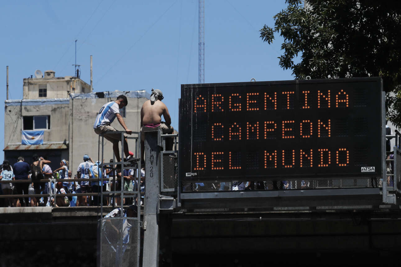 Τα ελικόπτερα έκαναν κύκλους πάνω από την πρωτεύουσα και η Γκαμπριέλα Τσερούτι, εκπρόσωπος του προέδρου της Αργεντινής, έγραψε στο Twitter: «Οι παγκόσμιοι πρωταθλητές πετούν κατά μήκος της διαδρομής που ακολουθούσαν, επειδή ήταν αδύνατο να συνεχίσουν οδικώς με την έκρηξη της ευτυχίας. Ας συνεχίσουμε να γιορτάζουμε ειρηνικά και ας τους δείξουμε την αγάπη και τον θαυμασμό μας».