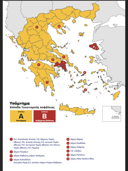 Στο επίπεδο Β – κόκκινο, πλέον, είναι οι εξής περιοχές: