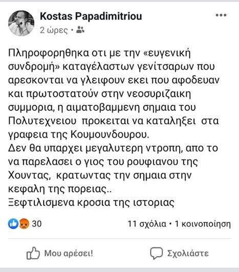 Ο γραμματέας της Νεολαίας ΣΥΡΙΖΑ, απέρριψε τον ισχυρισμό ότι η σημαία ανήκει στην ΠΑΣΠ και προχώρησε στην παρακάτω ανάρτηση: