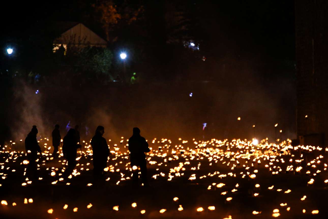 Μόλις έπεσε η νύχτα την Κυριακή, 10.000 πυρσοί που ήταν τοποθετημένοι μπροστά από τα τείχη φώτισαν την τάφρο του Πύργου.