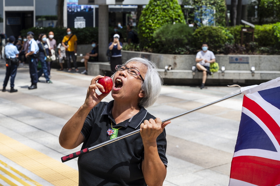 Η Αλεξάντρα Γουόνγκ, διαδήλωσε μόνη της κρατώντας τη βρετανική σημαία, έξω από τα δικαστήρια του Χονγκ Κονγκ, διαμαρτυρόμενη για την σφαγή των φοιτητών στην πλατεία Τιενανμέν και συνελήφθη την Κυριακή.