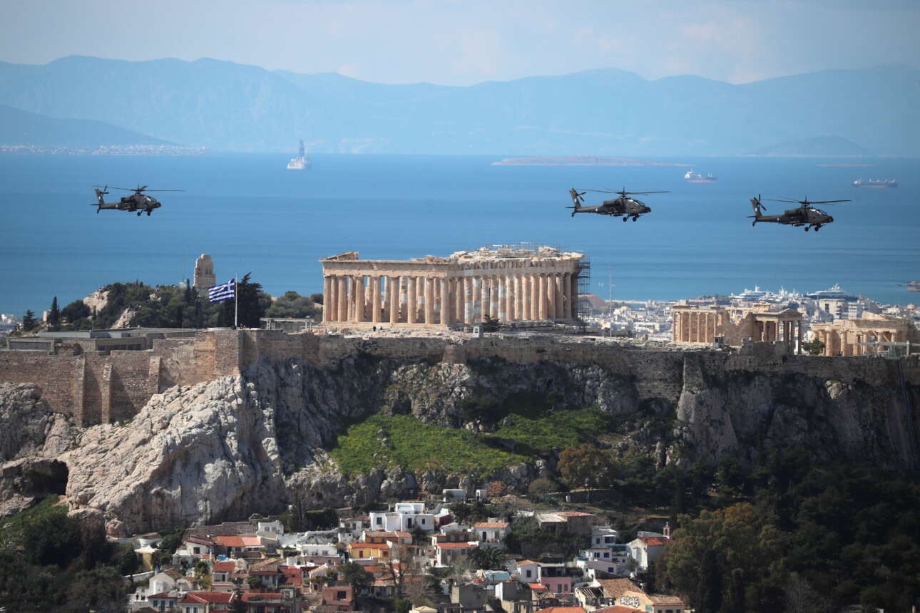 Ήταν μια παρέλαση διαφορετική από τις άλλες. Μεγαλειώδης όντως, όπως απαιτούσε το ορόσημο των 200 ετών από την Εθνική Παλιγγενεσία, με υψηλούς καλεσμένους όπως ο διάδοχος του βρετανικού θρόνου πρίγκιπας Κάρολος, ο πρωθυπουργός της Ρωσίας Μιχαήλ Μισούστιν, η υπουργός Άμυνας της Γαλλίας Φλοράνς Παρλί, ο πρόεδρος της Κύπρου Νίκος Αναστασιάδης. Αλλά και διαφορετική επειδή απουσίαζε ο κόσμος. Η Covid-19 επέβαλε τους κανόνες της και έτσι το σόου ήταν κυρίως τηλεοπτικό.