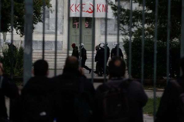 Νωρίτερα το μεσημέρι, ομάδα νεαρών εισέβαλε στο Ιδρυμα προκειμένου να διαμαρτυρηθεί για την απαγόρευση της πορείας.