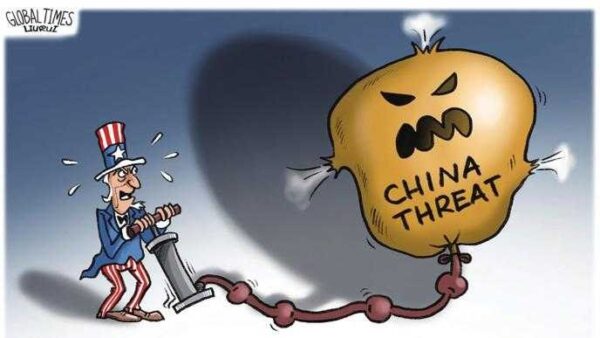 Μάλιστα, το αγγλόφωνο κινεζικό Μέσο Global Times ήταν καυστικότατο, αφού δημοσίευσε το παρακάτω σκίτσο που υπαινίσσεται εσκεμμένη διόγκωση της «κινεζικής απειλής» από πλευράς ΗΠΑ.