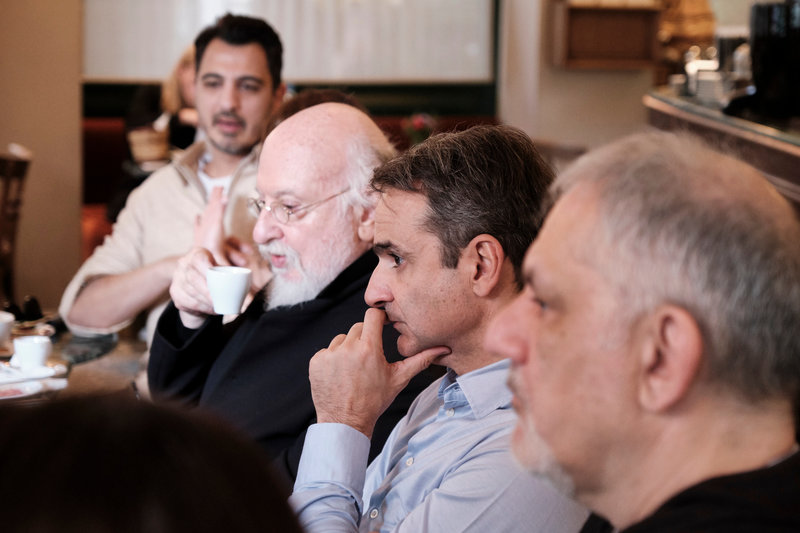 Ο Κυριάκος Μητσοτάκης συνεχίζει να εκπλήσσει. Ευχάριστα. Μετά τις βόλτες στις γειτονιές της Αθήνας, μετά τις συναντήσεις με διάφορες κοινωνικές ομάδες –και εκπροσώπους εργαζομένων όπως αυτούς στον κλάδο των διανομέων (εδώ)– ο πρόεδρος της Νέας Δημοκρατίας συναντήθηκε και με την αφρόκρεμα του ελληνικού πενταγράμμου: Και Διονύσης Σαββόπουλος και Νίκος Πορτοκάλογλου και Φίλιππος Πλιάτσικας και Φοίβος Δεληβοριάς και Χρήστος Νικολόπουλος και πολλοί άλλοι συνέφαγαν με τον αρχηγό της αξιωματικής αντιπολίτευσης.