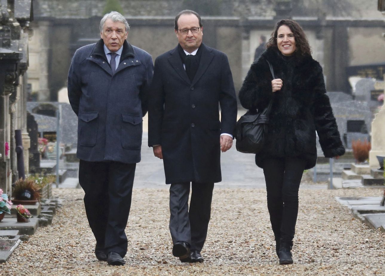 Αριστερά από τον Ολάντ βρίσκεται ο Ζιλμπέρ Μιτεράν, ο νεότερος γιος του Φρανσουά, ο οποίος με τη σύζυγό του, Ντανιέλ, παντρεύτηκαν το 1944 και απέκτησαν τρεις γιους. Δεξιά του Ολάντ είναι η Μαζαρίν Πινγκό, κόρη του Μιτεράν εκτός γάμου