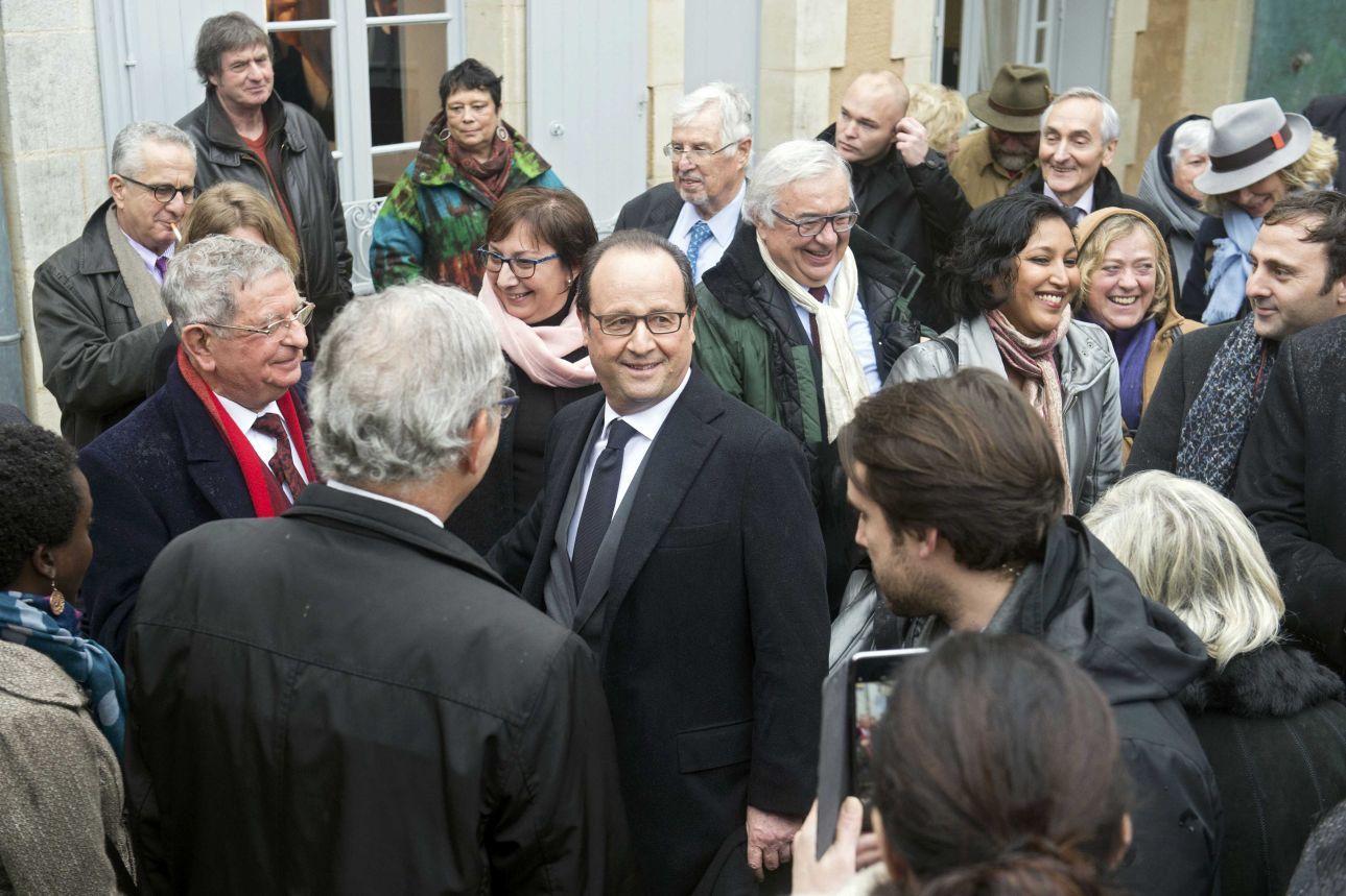 Ο Φρανσουά Ολάντ έξω από το σπίτι που γεννήθηκε το 1916 ο πρώην γάλλος πρόεδρος. Ο Μιτεράν κρατά μέχρι και σήμερα το… ρεκόρ με τα περισσότερα χρόνια στο τιμόνι της Γαλλίας. Κανείς άλλος δεν έχει μείνει στην εξουσία για 14 συνεχόμενα χρόνια, όπως ο ίδιος
