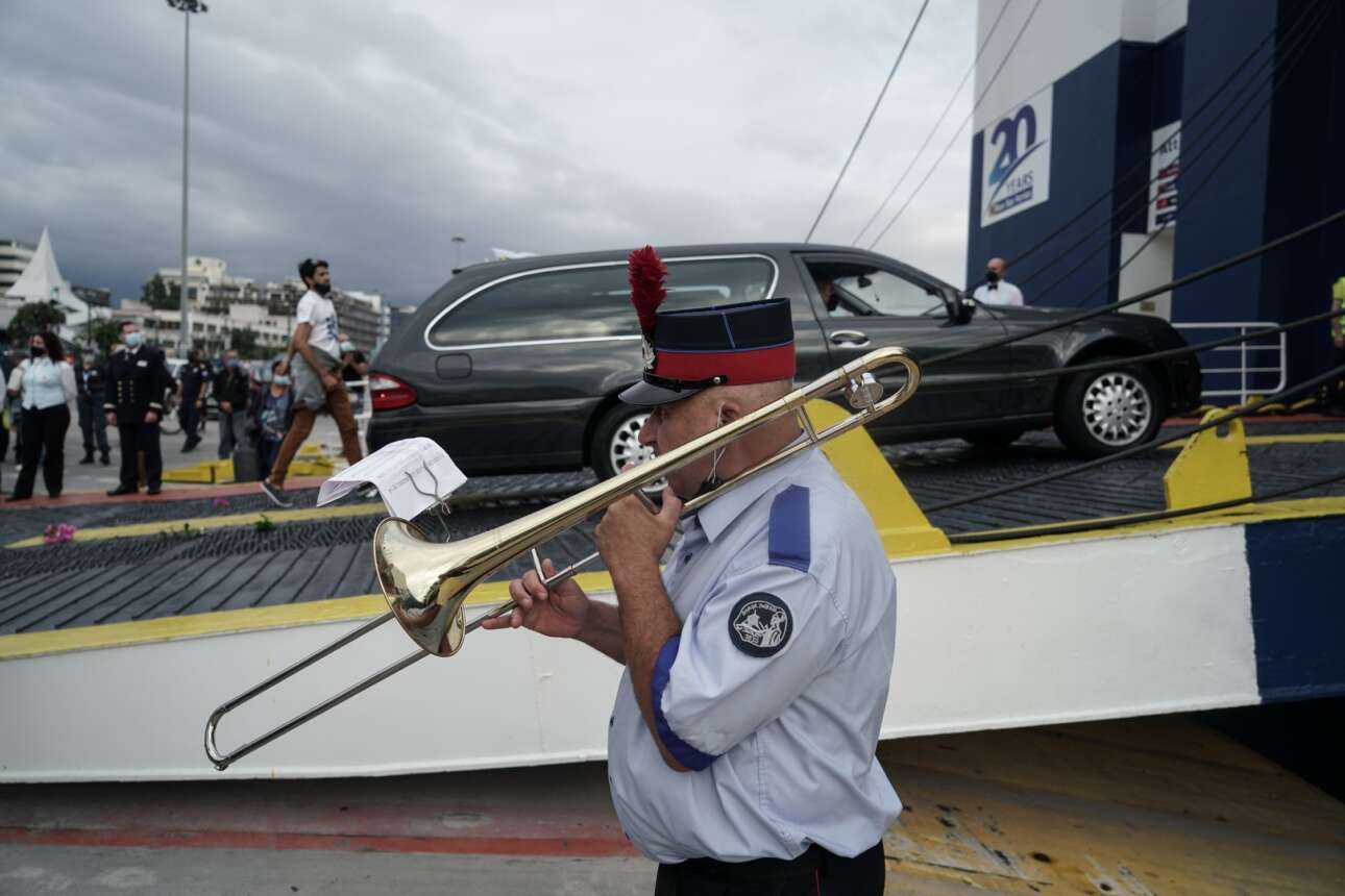 Η πομπή της σωρού του Μίκη Θεοδωράκη αναχωρεί από τον Πειραιά με προορισμό τα Χανιά, όπου πραγματοποιήθηκε η ταφή του, στις 8 Σεπτεμβρίου