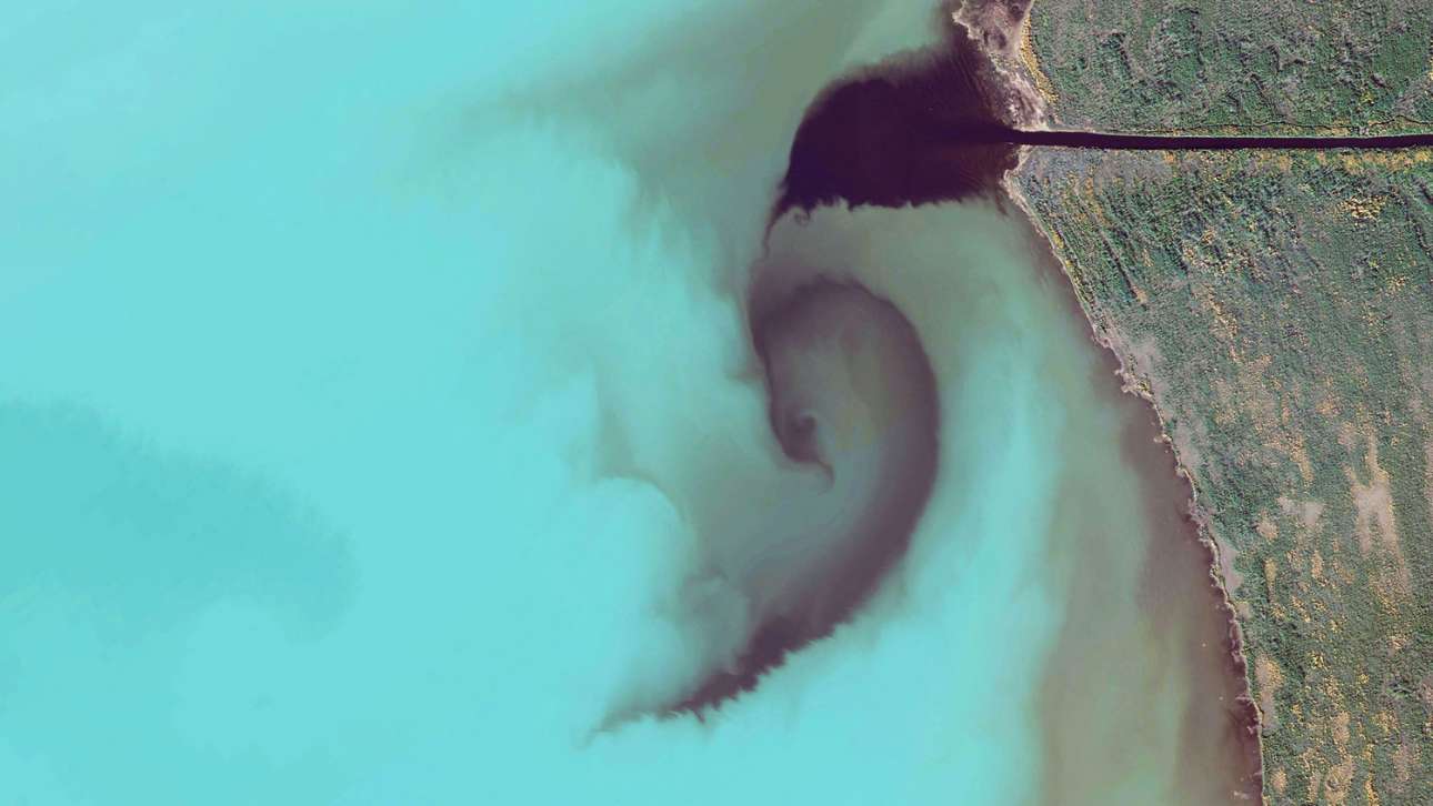 Τυρκουάζ απόχρωση στη λίμνη Σουπίριορ στο καναδέζικο Οντάριο καθώς τα νερά του ποταμού εκβάλλουν εντός της