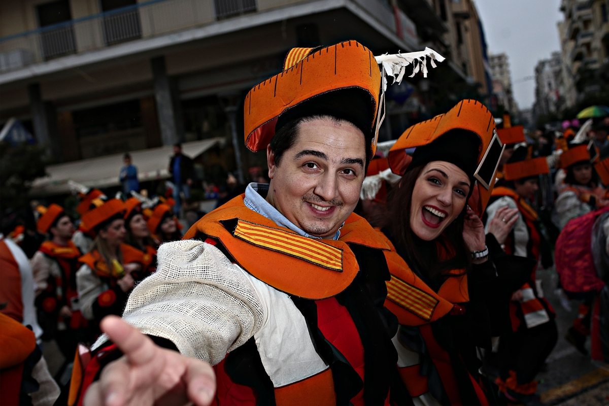 Η βροχή που έπεφτε στην Πάτρα από το μεσημέρι της Κυριακής δεν πτόησε επισκέπτες και καρναβαλιστές να βγουν στους δρόμους της πόλης – άλλοι συμμετείχαν ζωηρά στην παρέλαση και άλλοι παρακολουθούσαν κάτω από τις στοές των πεζοδρομίων της οδού Κορίνθου. Ο βασιλιάς καρνάβαλος, η βασίλισσα με τη συνοδεία της, τα πληρώματα του «κρυμμένου θησαυρού»… Σχεδόν 30.000 καρναβαλιστές έτρεξαν, τραγούδησαν και χόρεψαν και η παρέλαση ολοκληρώθηκε λίγο πριν τις 7 το απόγευμα.