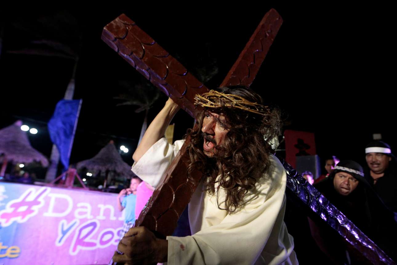 Πιστοί σε λιτανεία το βράδυ του Μεγάλου Σαββάτου στους δρόμους του Ναχουσάλκο του Ελ Σαλβαντόρ