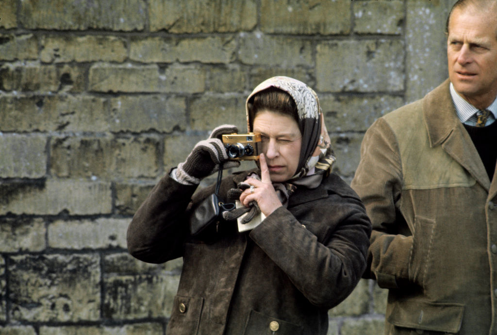 Η βασίλισσα της Αγγλίας Ελισάβετ Β' τραβάει φωτογραφίες με τη χρυσή της κάμερα Rollei κατά τη διάρκεια επίσκεψής της, μαζί με τον σύζυγό της, πρίγκιπα Φίλιππο (δεξιά), στην κωμόπολη του Μπάντμιντον, με αφορμή τους ετήσιους τοπικούς ιππικούς αγώνες