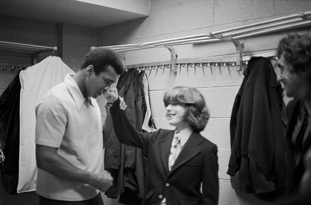 Ο Τζον Κένεντι τζούνιορ, γιος του εκλιπόντος προέδρου των ΗΠΑ, γρονθοκοπά... περιπαικτικά τον πρωταθλητή πυγμαχίας Μοχάμεντ Αλι στο καμαρίνι του. Εκείνο το απόγευμα (28 Iανουαρίου 1974) ο Αλι νίκησε τον Τζον Φρέιζερ, έναν από τους δύο μεγάλους αντιπάλους του στα βαρέα βάρη - ο άλλος ήταν ο Τζορτζ Φόρμαν