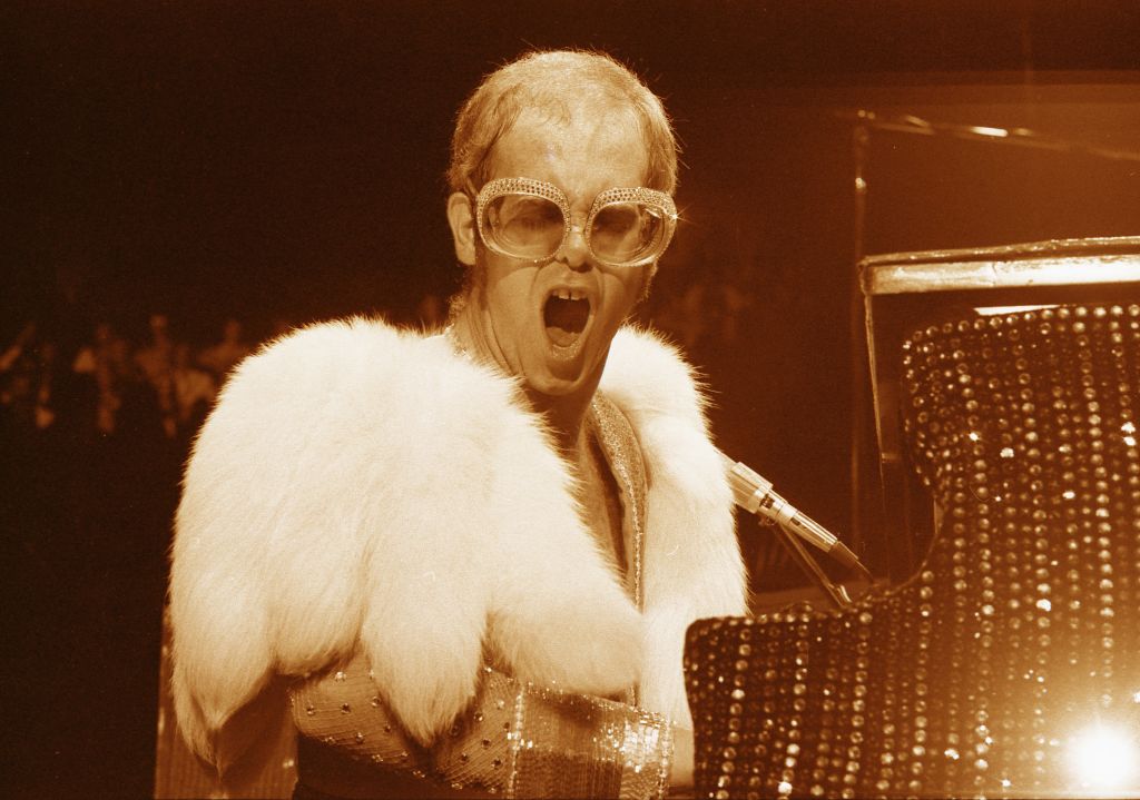 Ο βρετανός τραγουδιστής Ελτον Τζον σε κοντσέρτο του τον Οκτώβριο του 1974, εποχή της παντοδυναμίας του γκλαμ ροκ και των εξωφρενικών, φανταχτερών επί σκηνής εμφανίσεων των εκπροσώπων του - αν και ο συγκεκριμένος σούπερ σταρ «έπαιζε» πέρα και πάνω από εποχιακά είδη και ιδιώματα