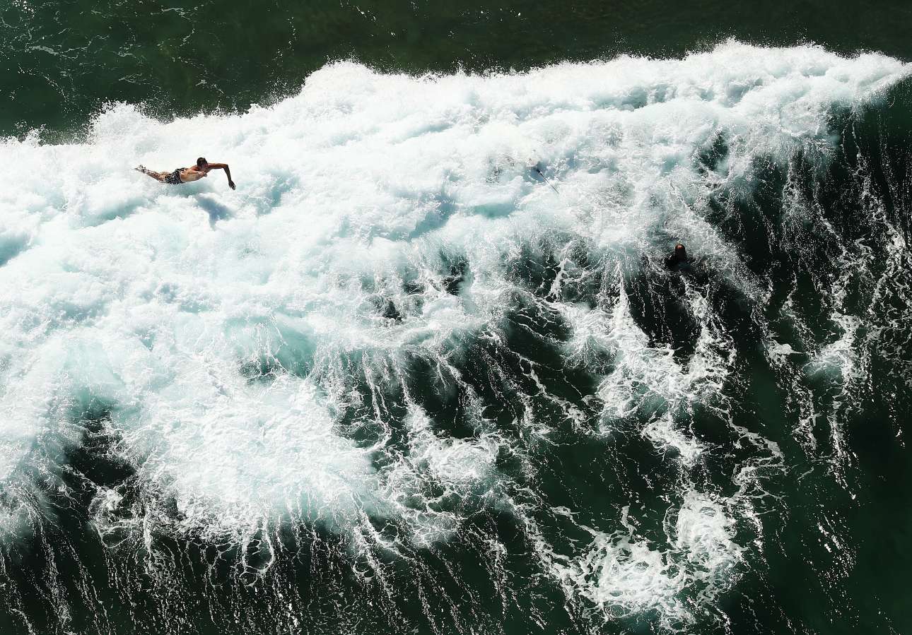 Στη διάσημη παραλία Μπόντι του Σίδνεϊ, ο φωτογράφος Ράιαν Πιρς κατέγραψε τη στιγμή που ένας σέρφερ πέφτει από τη σανίδα του. Η σύνθεση αυτής της εικόνας μεταφέρει πολύ πετυχημένα στον θεατή την αίσθηση του τεράστιου κύματος, ενώ ταυτόχρονα θέτει την ανθρωπότητα σε προοπτική με τη Φύση. Καθώς ο σερφερ χάνει τον έλεγχο της σανίδας του και αρχίζει να πέφτει στο κύμα, η φωτογραφία σου προκαλεί τον φόβο ότι η Φύση έχει τη δύναμη να ελέγχει τη μοίρα μας ανά πάσα στιγμή