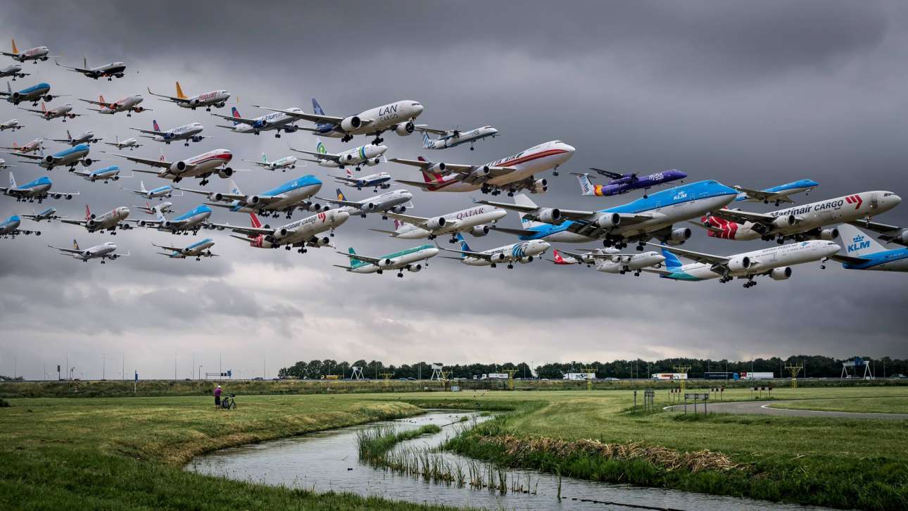 Αεροσκάφη διαφόρων εταιρειών πλησιάζουν στο Αεροδρόμιο Schiphol του Αμστερνταμ για προσγείωση