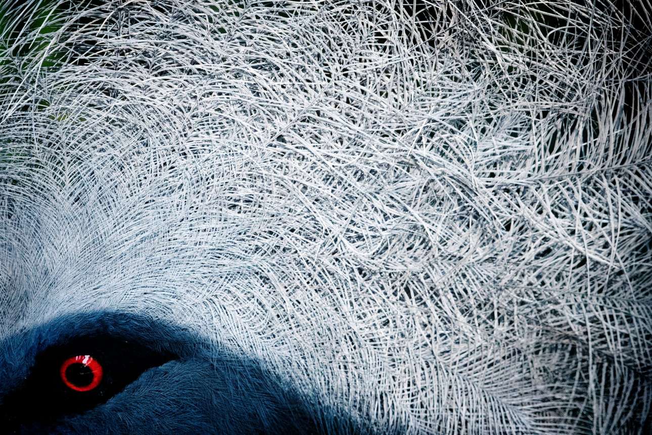 Βραβείο στην κατηγορία «Προσοχή στην Λεπτομέρεια». Εκπληκτικό κοντινό σε ένα περιστέρι Goura Cristata και στην χαρακτηριστική χαίτη του είδους του, στο Πάρκο Πουλιών Τζουρόνγκ της Σιγκαπούρης