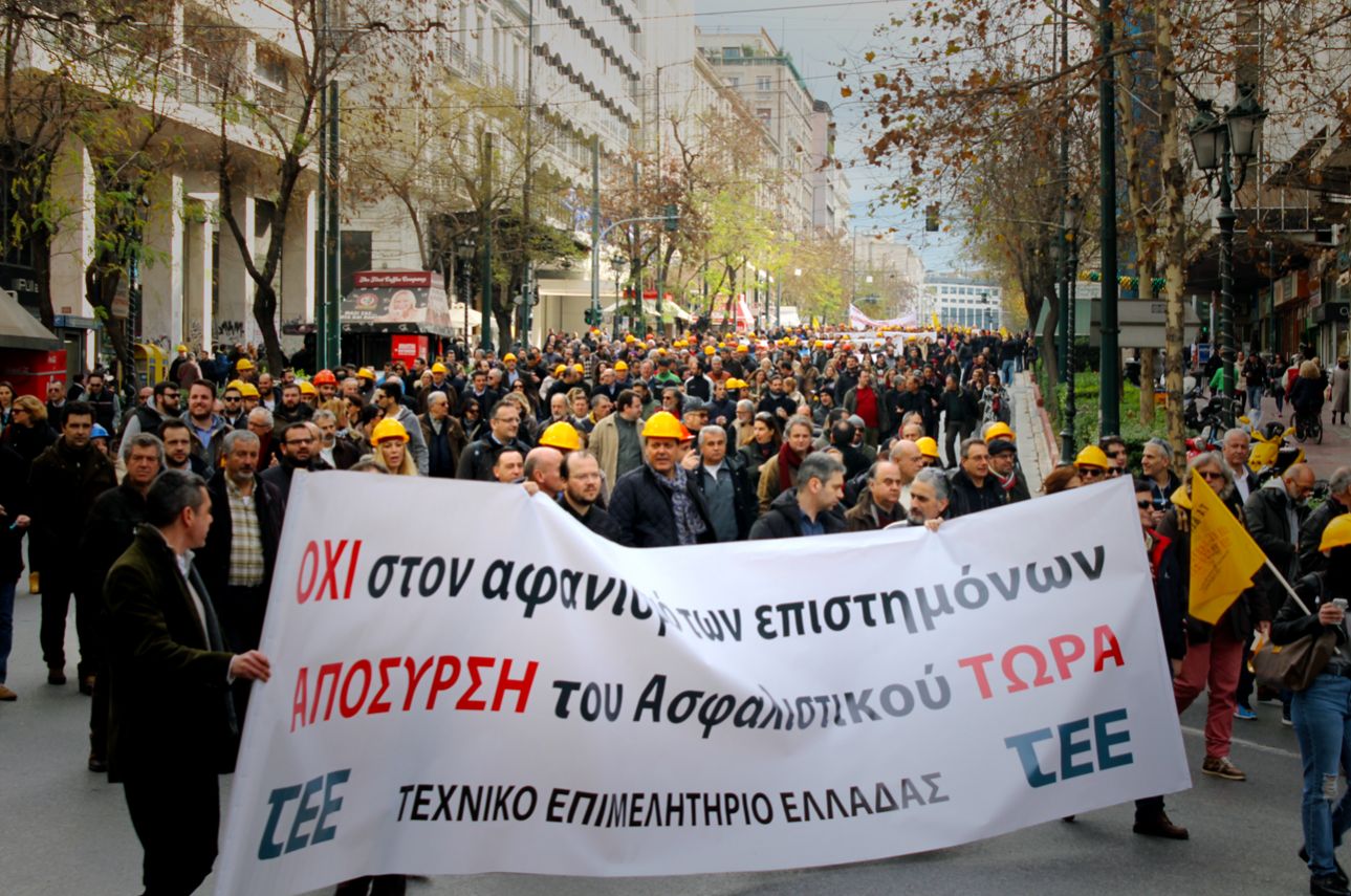 Το σύνθημα «Ψέμα κάθε λέξη στο στόμα του Αλέξη» κυριάρχησε στην σημερινή συγκέντρωση που πραγματοποίησαν το μεσημέρι οι ελεύθεροι επαγγελματίες μαζί με δικηγόρους, μηχανικούς, συμβολαιογράφους, γιατρούς, φοροτεχνικούς και δεκάδες άλλους επιστημονικούς φορείς. Η ογκώδης πορεία διαμαρτυρίας για το νέο Ασφαλιστικό ξεκίνησε από τα Προπύλαια και διέσχισε τις οδούς Πανεπιστημίου και Σταδίου, φτάνοντας μέχρι το Υπουργείο Εργασίας και τη Βουλή.