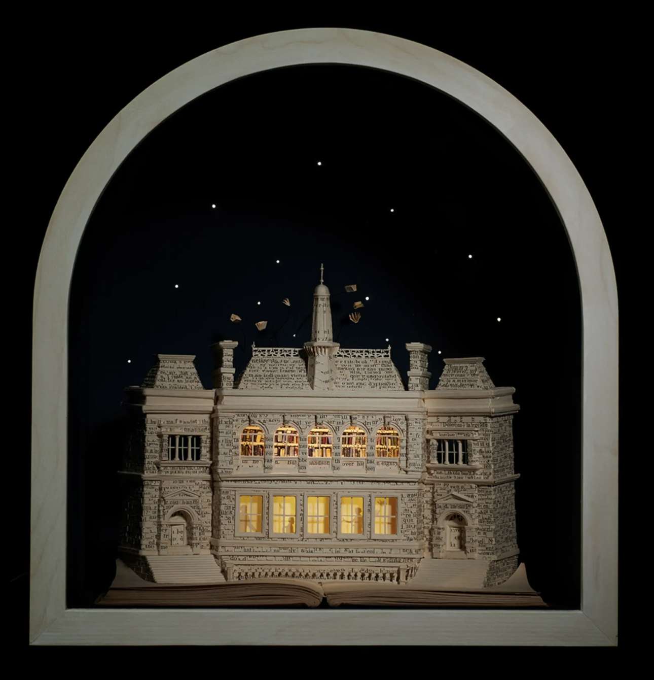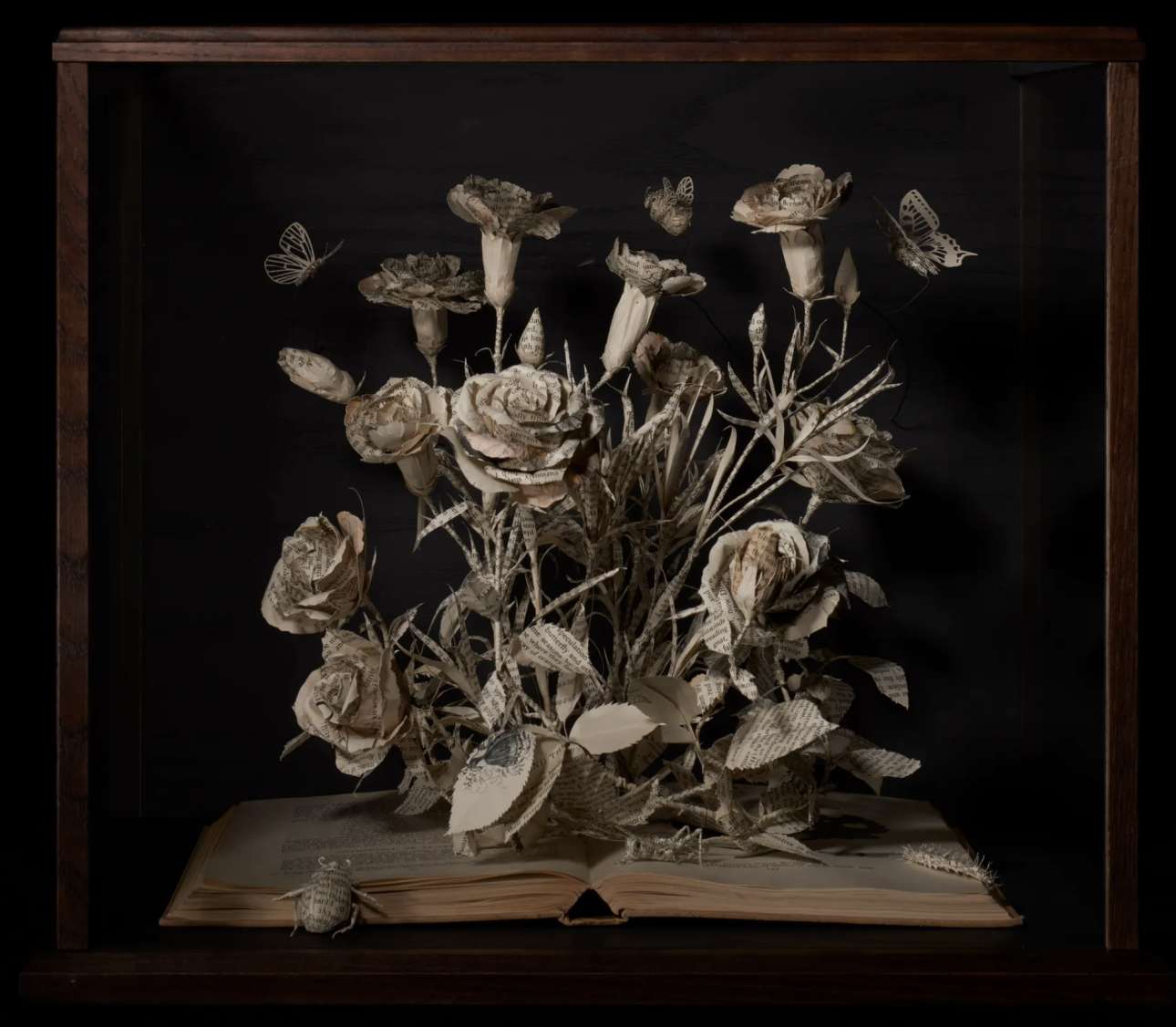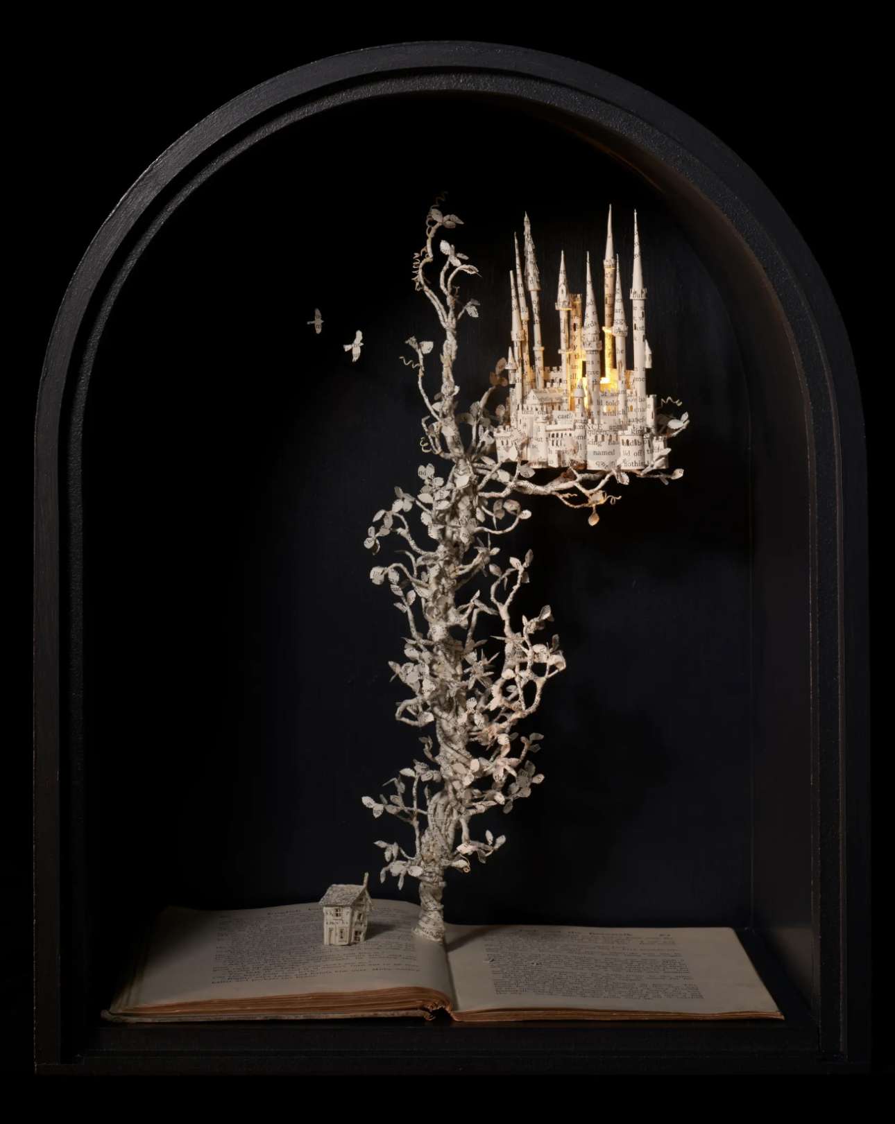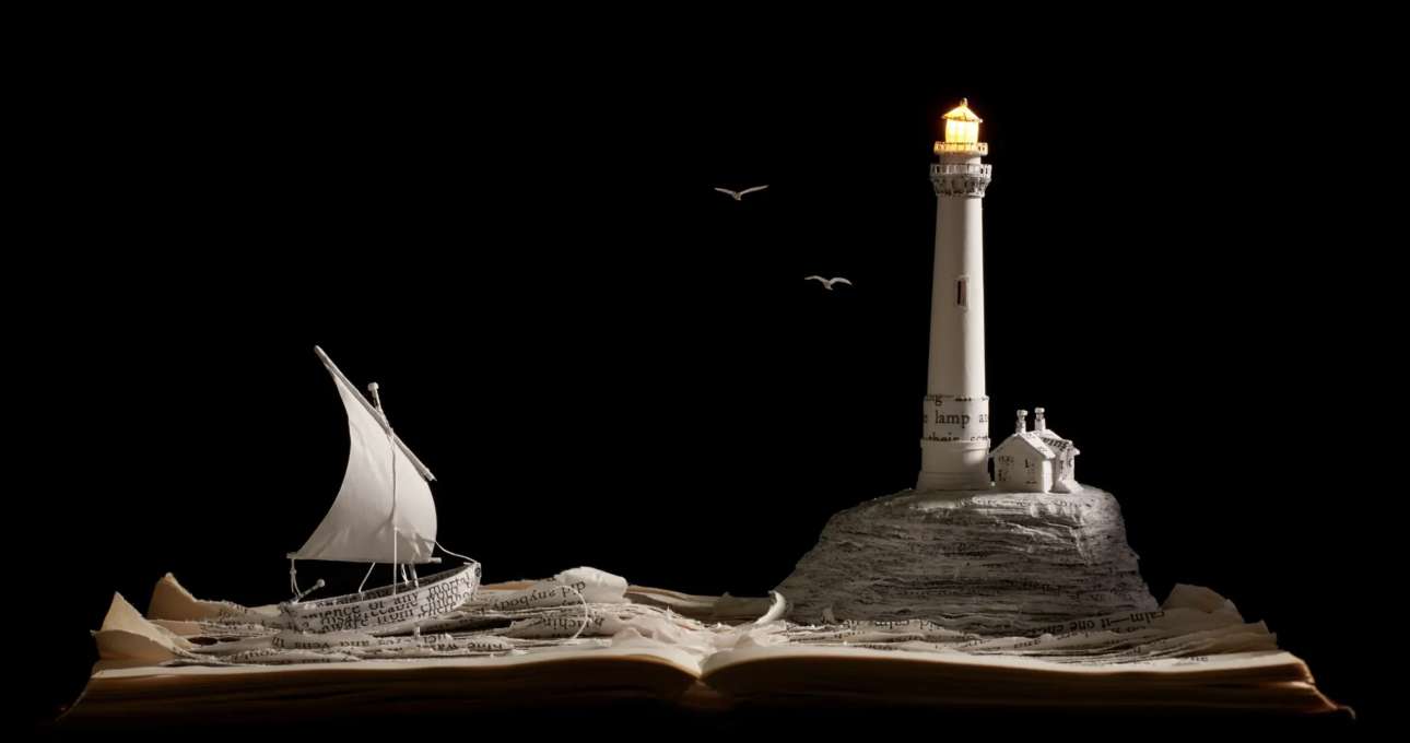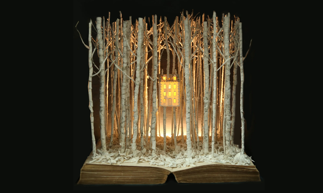 Η βρετανίδα Σου Μπλάκγουελ χρησιμοποιούσε πάντα κείμενο στην τέχνη της, αλλά άρχισε να δημιουργεί γλυπτά από βιβλία όταν πέθανε ο πατέρας της: μέσα στο πένθος της, άρχισε να δημιουργεί πεταλούδες από χαρτί πάνω από τις σελίδες του «Ησυχου Αμερικανού», του διάσημο μυθιστορήματος του Γκράχαμ Γκριν, το οποίο είχε βρει σε ένα βιβλιοπωλείο μεταχειρισμένων στην Ταϊλάνδη. Από τότε, αγοράζει μεταχειρισμένα βιβλία και κατασκευάζει εκπληκτικά διοράματα με σπίτια, χαρακτήρες παραμυθιών, ζώα και φυτά, καλώντας μας να αναλογιστούμε την ευθραυστότητα της ζωής, των ονείρων και των φιλοδοξιών μας
