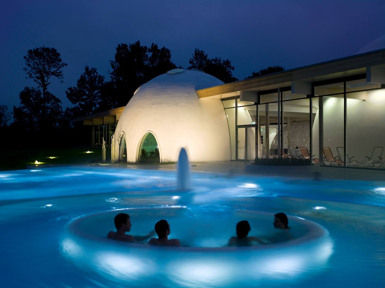 Οκτώ θόλοι στεγάζουν τις θέρμες «Therme Bad Aibling» στη νότια Βαυαρία όπου βρίσκονται πισίνες και μπανιέρες υδρομασάζ, καθεμία με ένα διαφορετικό μουσικό θέμα και ειδική θερμοκρασία