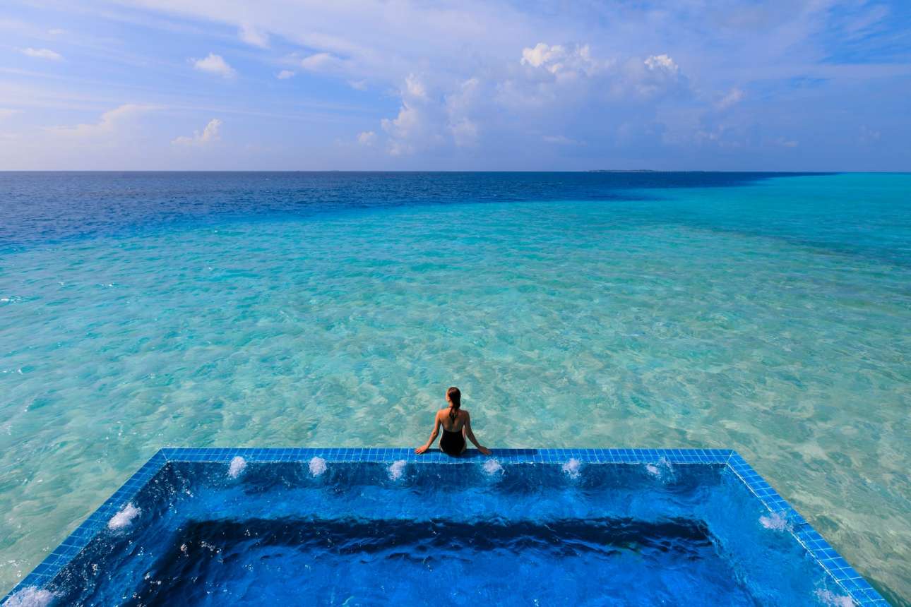 Το τεράστιο τζακούζι του resort Velassaru στις Μαλδίβες: τα νερά της πισίνας ρέουν κατευθείαν στον ωκεανό που την περιβάλλει