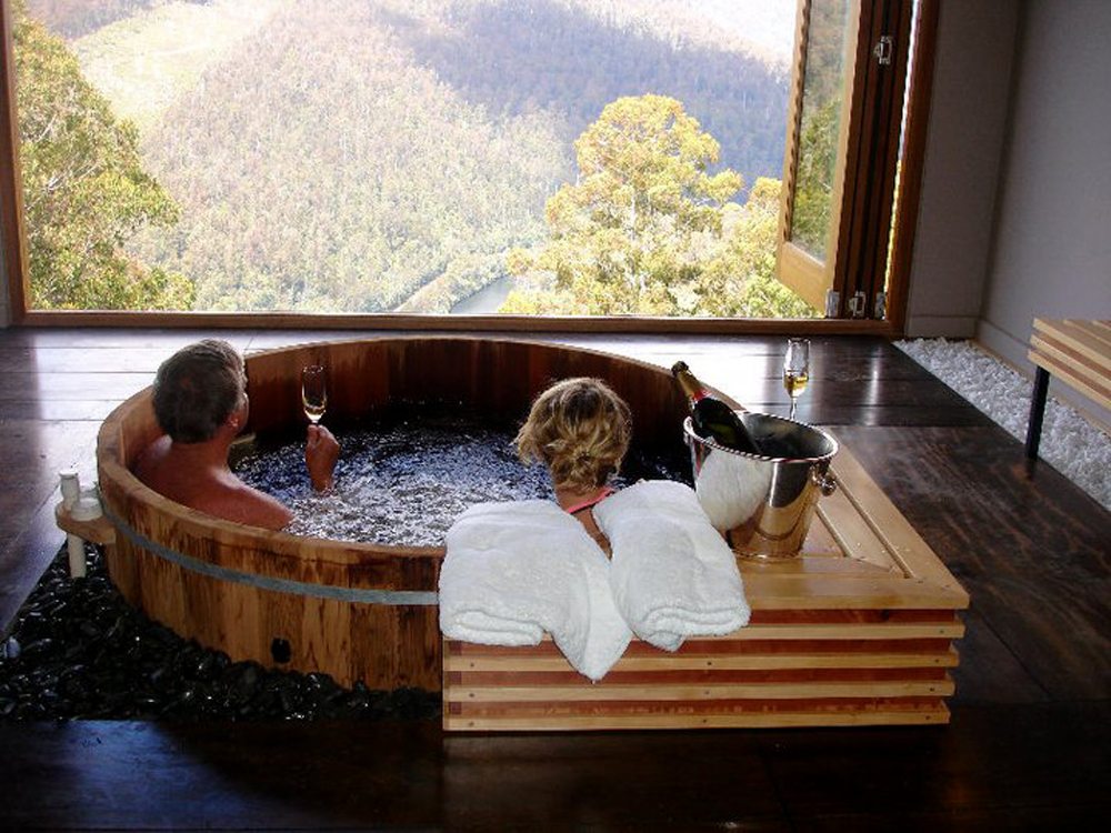 Το ξενοδοχείο «The Lodge» έχει θέα στα βουνά της Τασμανίας και διαθέτει σουίτες με μπανιέρες από ξύλο