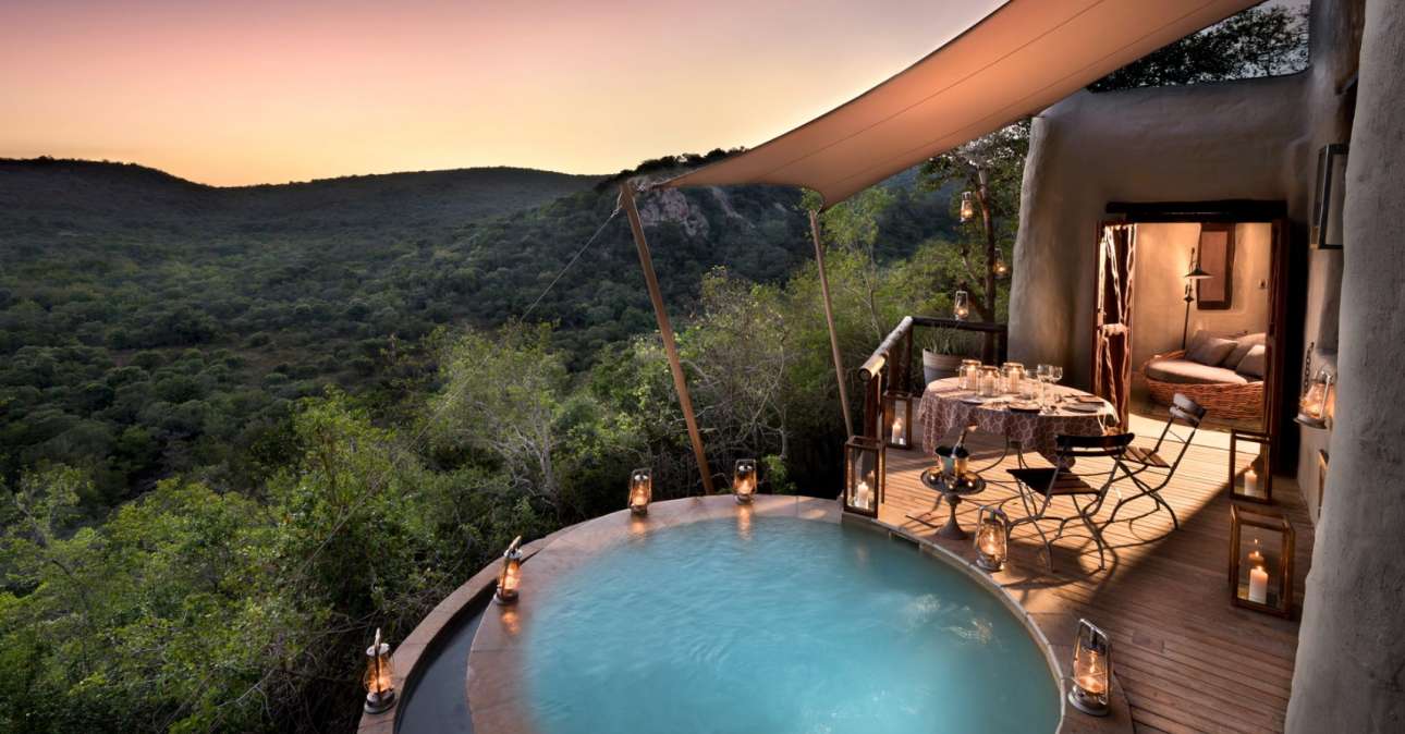 Το υπέροχο «Phinda Rock Lodge» στο Μπιγιόντ της Νότιας Αφρικής, στην περιοχή των Ζουλού, διαθέτει ιδιωτικές μπανιέρες υδρομασάζ ενώ προσφέρει μοναδική θέα