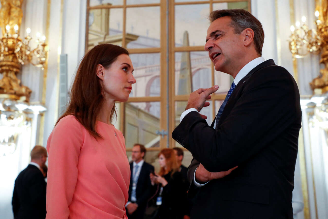 Λίγο πριν την έναρξη των εργασιών της Συνόδου, ο φακός συνέλαβε σε αρκετά τετ α τετ και τον έλληνα Πρωθυπουργό. Δίπλα του ο γερμανός καγκελάριος Ολαφ Σολτς