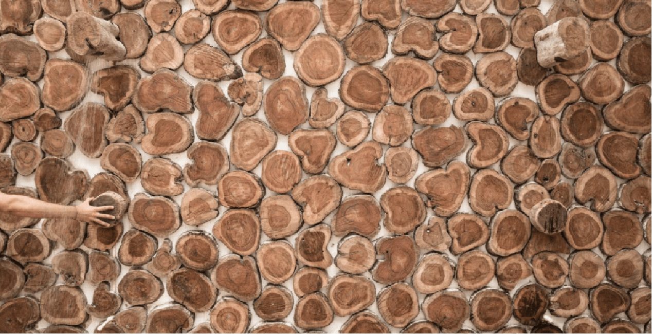 Αυτό είναι το ντους στην πισίνα. Η ντουσιέρα και η μπαταρία είναι καλυμμένες με κορμούς δέντρων