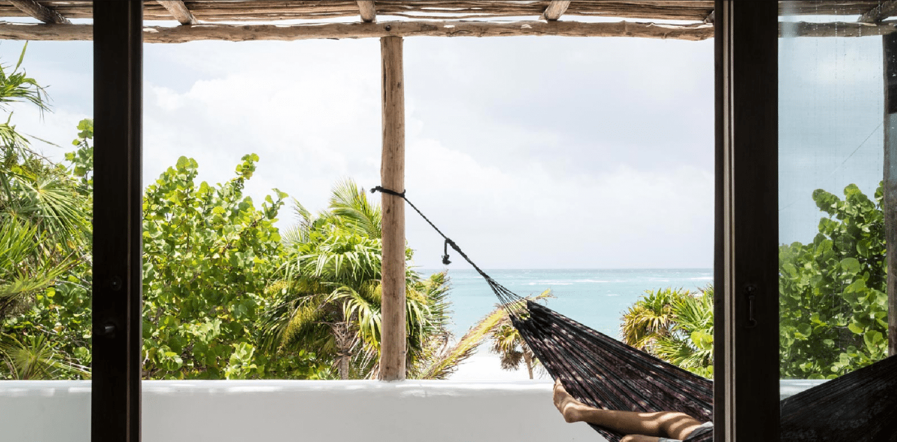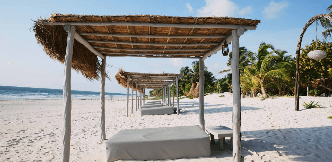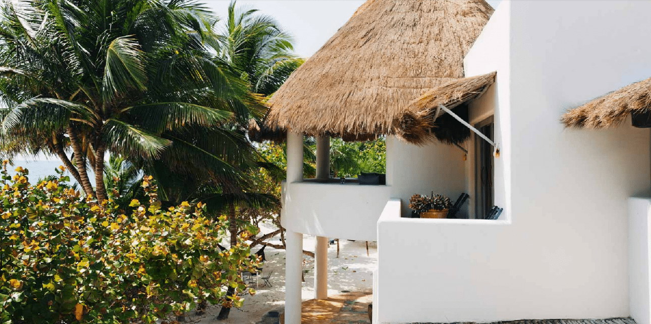 Μπαλκόνια με θέα στη θάλασσα και στην ολόλευκη άμμο και με δροσερά στέγαστρα από κοκοφοίνικα. Μη μου πείτε ότι δεν ονειρεύεστε ένα ωραίο απογευματινό κοκτέιλ στο μπαλκόνι...