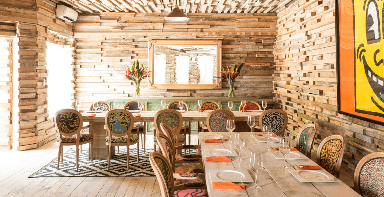 Εδώ σερβίρονται το πρωινό, και για όποιον θέλει, το μεσημεριανό και το βραδινό γεύμα. Οι καρέκλες είναι ντυμένες με ύφασμα που έχει τυπώματα από έργα του αμερικανού εικαστικού Κιθ Χάρινγκ