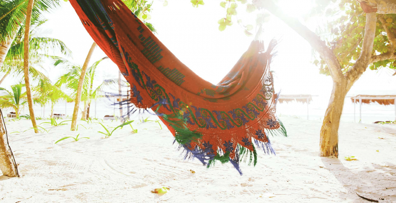 Μια αιώρα να ανεμίζει στην παραλία, κάτω από τα δέντρα και πάνω από την άσπρη άμμο. Μπροστά στο νερό διακρίνονται τα στέγαστρα των κρεβατιών-σεζλόνγκ. Οχι πείτε μου: αυτή δεν είναι μία εικόνα από τον παράδεισο;