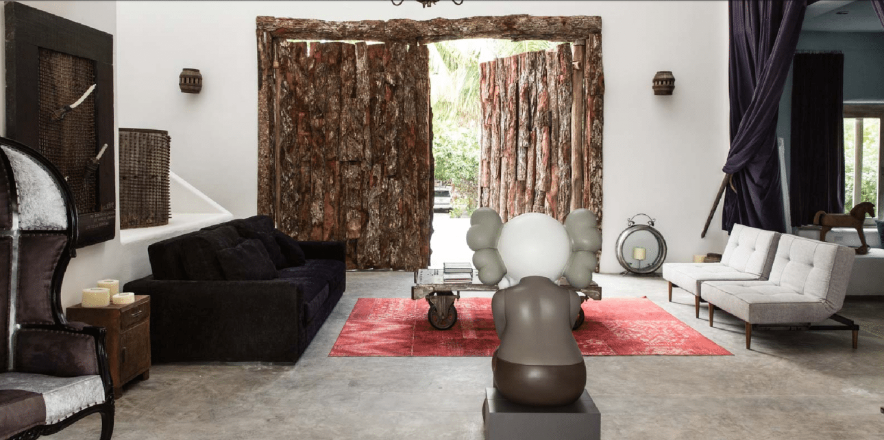Αλλο ένα δωμάτιο. Με μοντέρνα και μεξικάνικα έπιπλα. Με πάτωμα από τσιμεντοκονία για να πατάς ξυπόλυτος και να δροσίζεσαι. Με κορμούς, με έργα σύγχρονης τέχνης, με όλα όσα θέλεις να σε περιτριγυρίζουν