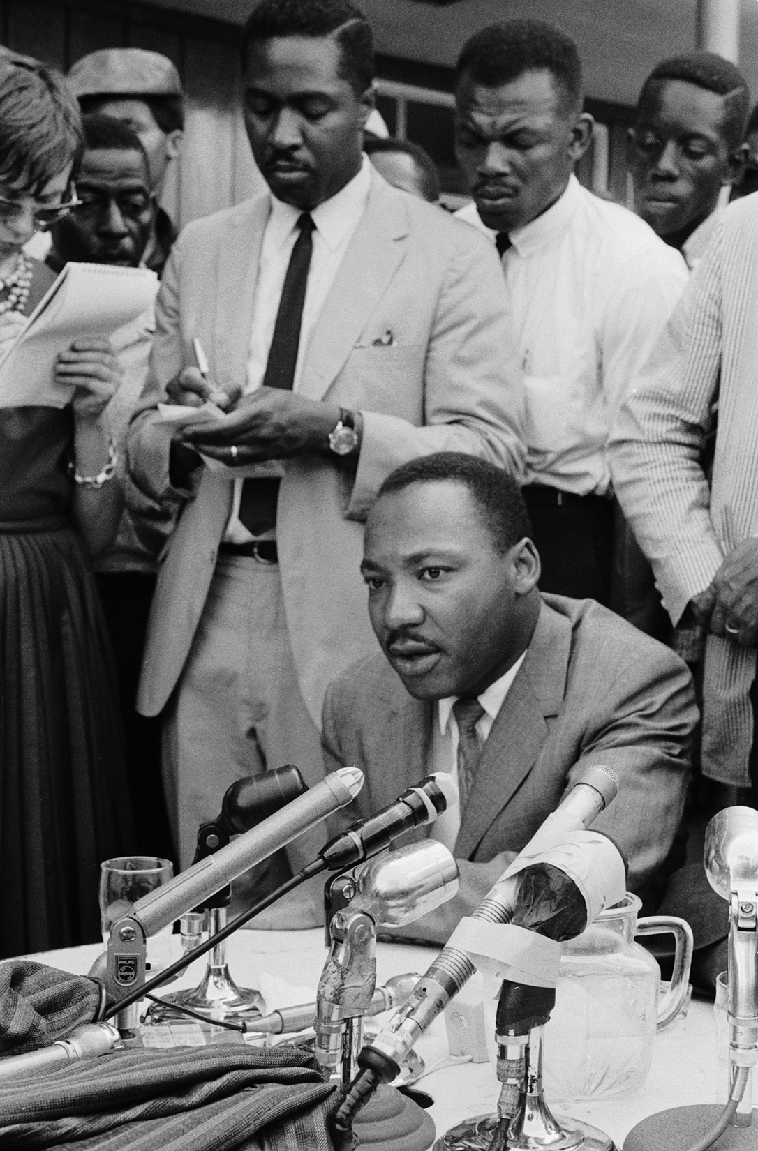 O Κλάρενς Τζόουνς, νομικός σύμβουλος του Μάρτιν Λούθερ Κινγκ, κρατά σημειώσεις κατά τη διάρκεια της συνέντευξης Τύπου που παραχώρησε ο εμβληματικός ακτιβιστής στο Μπέρμιγχαμ της Αλαμπάμα, τον Φεβρουάριο του 1963.