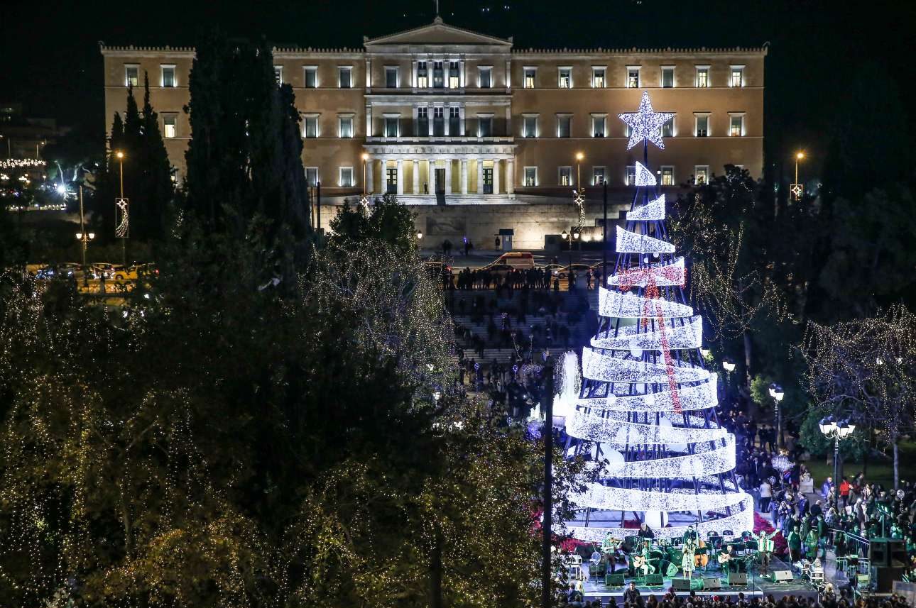 Το χριστουγεννιάτικο δέντρο φτιαγμένο από εκατοντάδες φωτάκια που κοσμεί την πλατεία Συντάγματος