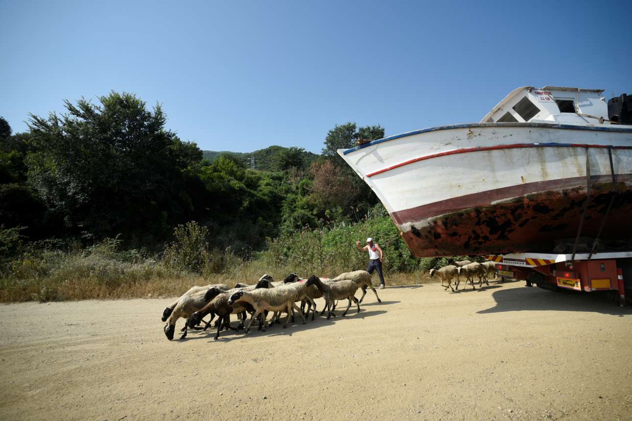 Ο Γιάννης Λουκάκης κάθεται δίπλα στο κατεστραμμένο αλιευτικό του σκάφος «Σμαραγδί» στη Σάρτη, της Χαλκιδικής. «Νιώθω σαν να με έχουν μαχαιρώσει, σαν να πεθαίνει ένας άνθρωπος» λέει ο ίδιος. Ο ψαράς από τη Χαλκιδική αποφάσισε να αποσύρει το καΐκι του λόγω ηλικίας και κούρασης και εξαιτίας των πολλών εξόδων για πετρέλαιο και δολώματα