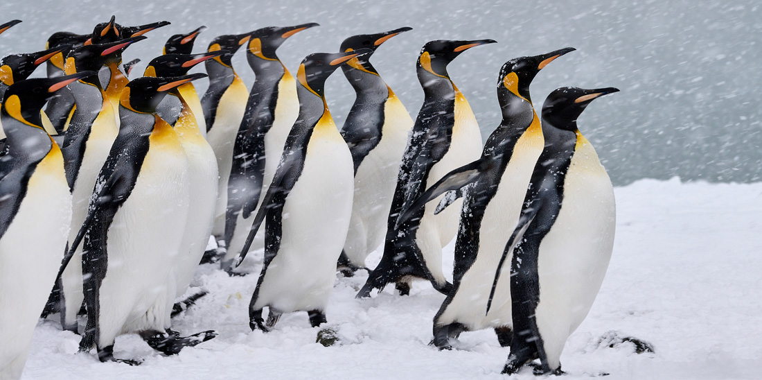 Βασιλικοί πιγκουίνοι που βαδίζουν στη χιονοθύελλα. Κατηγορία Ερασιτεχνική - Φύση/Τοπία. Νήσος Σάουθ Τζόρτζια, στον Ατλαντικό Ωκεανό