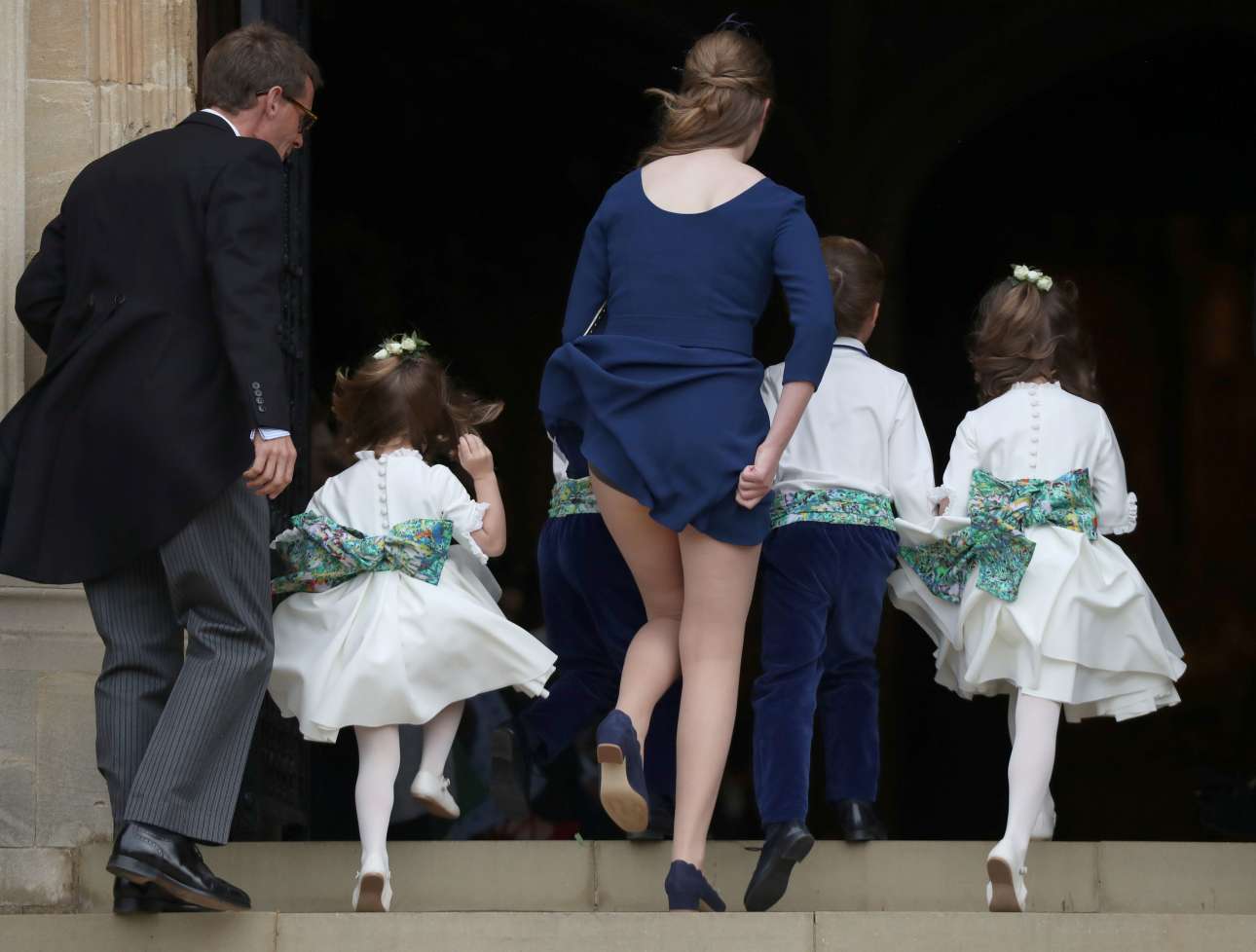 Πολύς αέρας σήμερα στο Λονδίνο που παρά λίγο να σηκώσει τα παρανυφάκια (και τις φούστες)