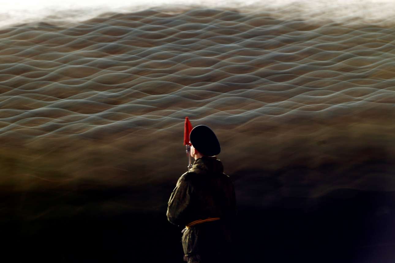 Μέλος των ενόπλων δυνάμεων της Ρωσίας παίρνει μέρος στην πρόβα της παρέλασης για την «Ημέρα της Νίκης». Είναι ο εορτασμός της 71ης επετείου της νίκης επί της ναζιστικής Γερμανίας στον Β Παγκόσμιο Πόλεμο. Κόκκινη Πλατεία, Μόσχα. 5 Μαΐου 2016.
