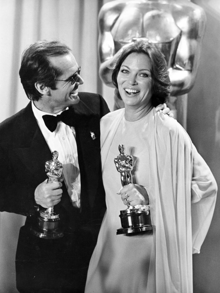 Μάρτιος του 1976. Οι ηθοποιοί Τζακ Νίκολσον και Λουίζ Φλέτσερ, πρωταγωνιστές στο πολυβραβευμένο «Στη Φωλιά του Κούκου», μιλούν στον Τύπο κατά την 48η τελετή απονομής, στο Dorothy Chandler Pavilion, στο Λος Αντζελες