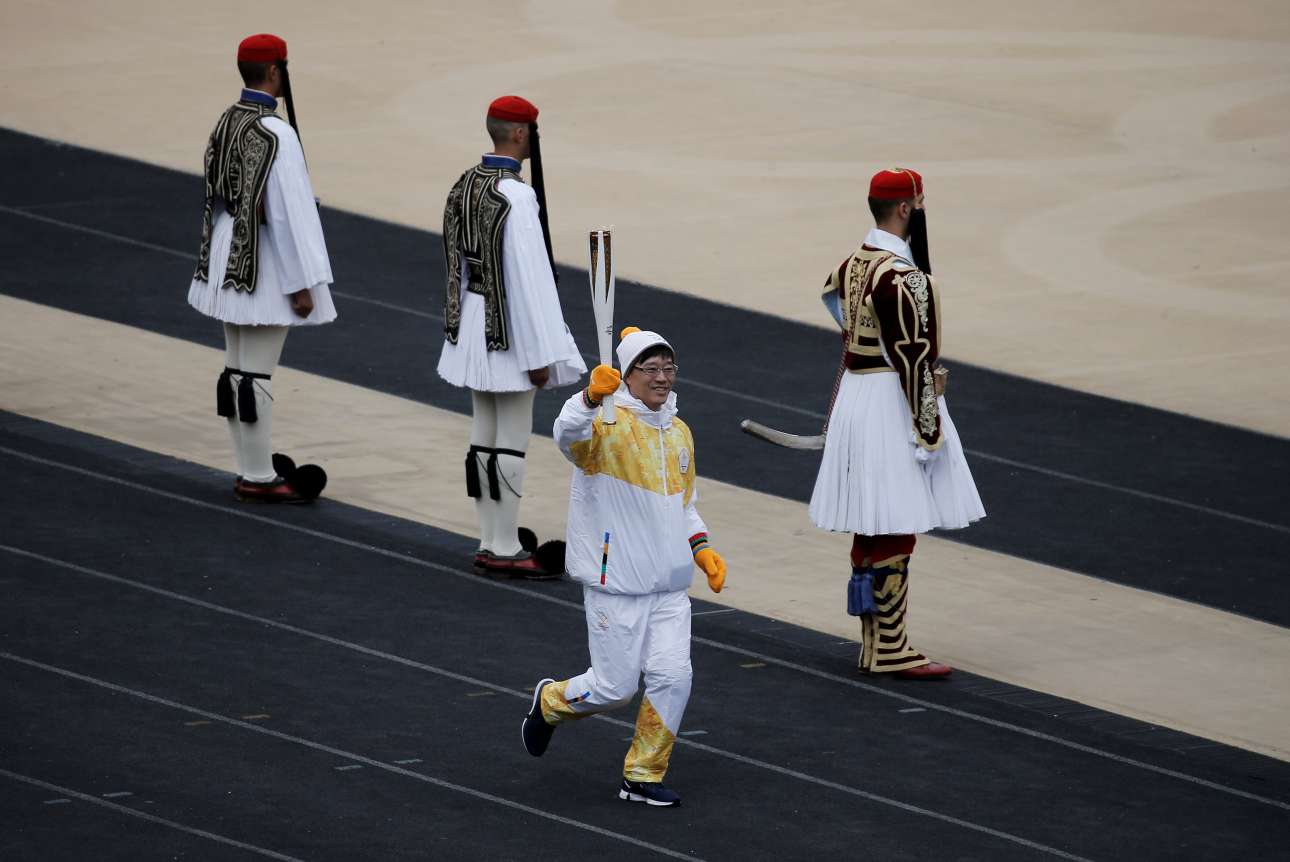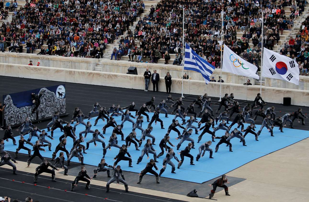 Στο Παναθηναϊκό Στάδιο έγινε η παράδοση της Ολυμπιακής Φλόγας για τους Χειμερινούς Ολυμπιακούς Αγώνες που θα γίνουν στην Πιονγκτσάνγκ της Νότιας Κορέας το 2018. Η τελετή παράδοσης ξεκίνησε στις 11.00 το πρωί με πολιτιστικά δρώμενα εμπνευσμένα από την ιστορία τόσο της Ελλάδας όσο και της Νότιας Κορέας