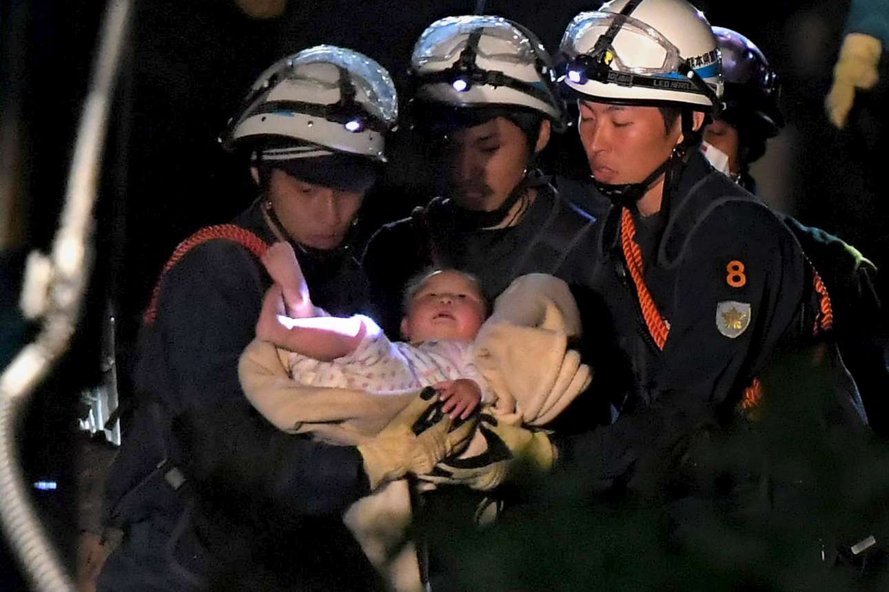 Εννέα νεκροί και εκατοντάδες τραυματίες είναι ο τραγικός απολογισμός του σεισμού μεγέθους 6,5 βαθμών της κλίμακας Ρίχτερ που σημειώθηκε στην νοτιοδυτική Ιαπωνία την Πέμπτη. Περίπου 44.000 άτομα έχουν εγκαταλείψει τα σπίτια τους ενώ πάνω από 100 μετασεισμικές δονήσεις καταγράφηκαν στο πρώτο 24ωρο. Οι φωτογραφίες είναι από την πόλη Μασίκι που δέχτηκε ιδιαίτερα ισχυρό πλήγμα