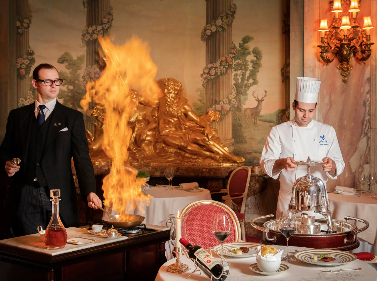 Στο εστιατόριο του ξενοδοχείου Ritz στο Λονδίνο δίνουν έμφαση στο ‘Arts de la Table’, μία θεατρική ιεροτελεστία που λαμβάνει χώρα δίπλα στο τραπέζι όπου γευματίζουν οι πελάτες