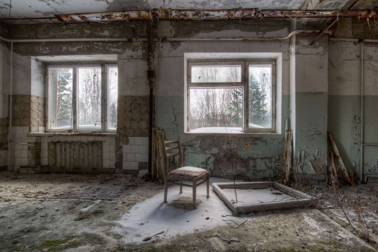 Εγκατελλειμμένο σπίτι στην πόλη φάντασμα Πριπιάτ στην Ουκρανία, όπου κάποτε ζούσαν 50.000 άνθρωποι που εργάζονταν στο πυρηνικό εργοστάσιο του Τσερνόμπιλ